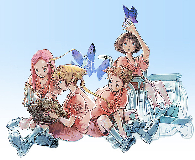 The four main child characters. From left to right: Ritz, Marche, Mewt, and Doned.