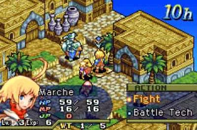 The player takes the role of Marche, who is accepted into a clan and must organize its members and take part in various missions to gain experience and status. The missions of varying difficulty are offered in pubs scattered around the world map, and a fee must be paid to partake; they are essential to advancing the story and obtaining valuable items and experience points. Some missions require a special item to accept it; this may mean another mission must be done first. Others require a certain skill or job class.