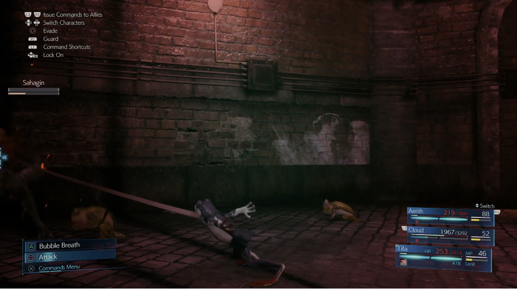 In Episode INTERmission, Sahagins cannot be fought, but the player can still obtain Enfeeblement Rings, which are rewards from clearing the first two matches in the Shinra Combat Simulator. If Yuffie becomes a toad, she can still synergize with Sonon; however, if he becomes a toad, he cannot synergize with her.