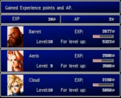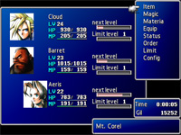 The menu is not accessible; therefore, Materia and items are inaccessible except during battles. The characters cannot level up and will remain at levels 9 (only Aeris) and 10. It is difficult to be knocked out unless done deliberately.