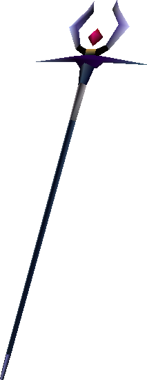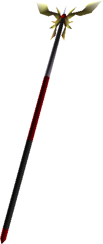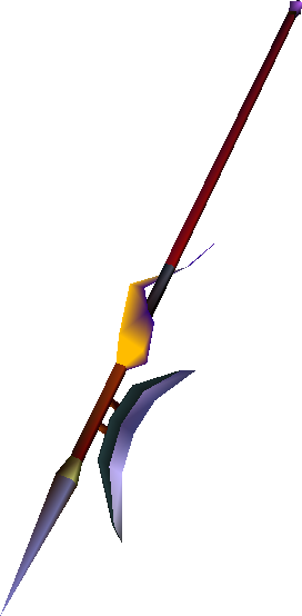 The Final Fantasy VII rendition of the Scimitar appears not as a sword, but as one of Cid's lance-type weapons more akin to a Guan Dao. This is because in the original Japanese version, the weapon was not named "Scimitar" but Seiryuu Engetsutou (青龍偃月刀), or Green Dragon Crescent Blade, the famous Guan Dao wielded by Guan Yu. Similarly, "Viper Halberd" is named after Zhang Fei's "Jahoko" (蛇矛) and "Flayer" is named after Lu Bu's "Houtengageki" (方天画戟).