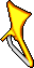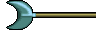 The second weapon is some sort of disc, circle, or orb. This is an odd sprite found in the sprite data. When made into a weapon, it behaves oddly. The character does not move forward when attacking, but simply stands there to raises their hands into the air. When attacking with it the user moves forward and raises their hands in the air, and a disc flies towards the target and disappears. After the attack, the character takes a step back from the original position they started. If the character attacks enough times, they will appear on the other side of the the battle screen.