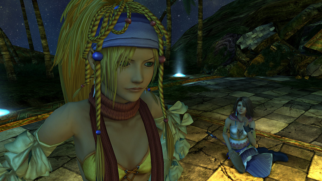 Later that night, the girls reminisce about their mission to reclaim Yuna's Garment Grid from Leblanc. Paine reveals she's writing a book about their adventures; Rikku says Paine should write about what's happening now instead of the past. The conversation escalates when Paine asks Rikku what she wants to do with her life, and Rikku cannot answer. Rikku says that she can't stay in one place and must always be busy, expressing jealousy towards Yuna for settling down, something Rikku feels unable to do herself. Taken aback, Yuna raises her voice to Rikku and asks why she doesn't understand that she only wants an everyday life. She accuses Yuna of wasting her life, but Yuna says Rikku is only fooling herself by always keeping busy. Paine gets in between them, but Rikku claims Paine only cares about herself, and Yuna says Rikku cares about others too much. The cousins' bickering causes Paine to raise her voice and ask what's the point of reuniting if they're only going to fight.