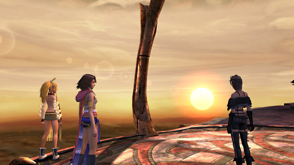 Watching the sunset again, Paine remembers the day Nooj shot her, Baralai, and Gippal under Shuyin's control. Rikku talks about how fearful and desperate she felt when she saw Zanarkand for the first time two years ago as she didn't want Yuna to die but chose not to stand in Yuna's way when she resolved to continue. Yuna talks about how, despite not knowing about the Final Aeon, being with her friends on her pilgrimage was enough for her.