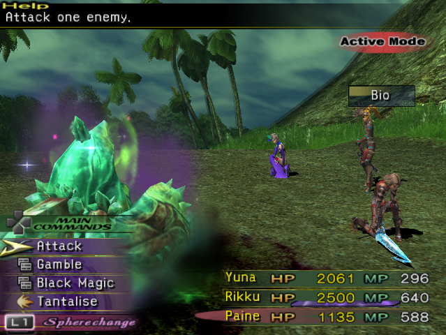 Null Magic is also an auto effect for the enemies Cactuar, Zalamander, Rukh, Tawrich, and Node (when colored yellow). It enables them to be permanently immune to magic attacks. The party must use physical attacks to defeat them. Offensive items (e.g. Dark Matter) can still be used as they inflict special damage rather than magical damage.