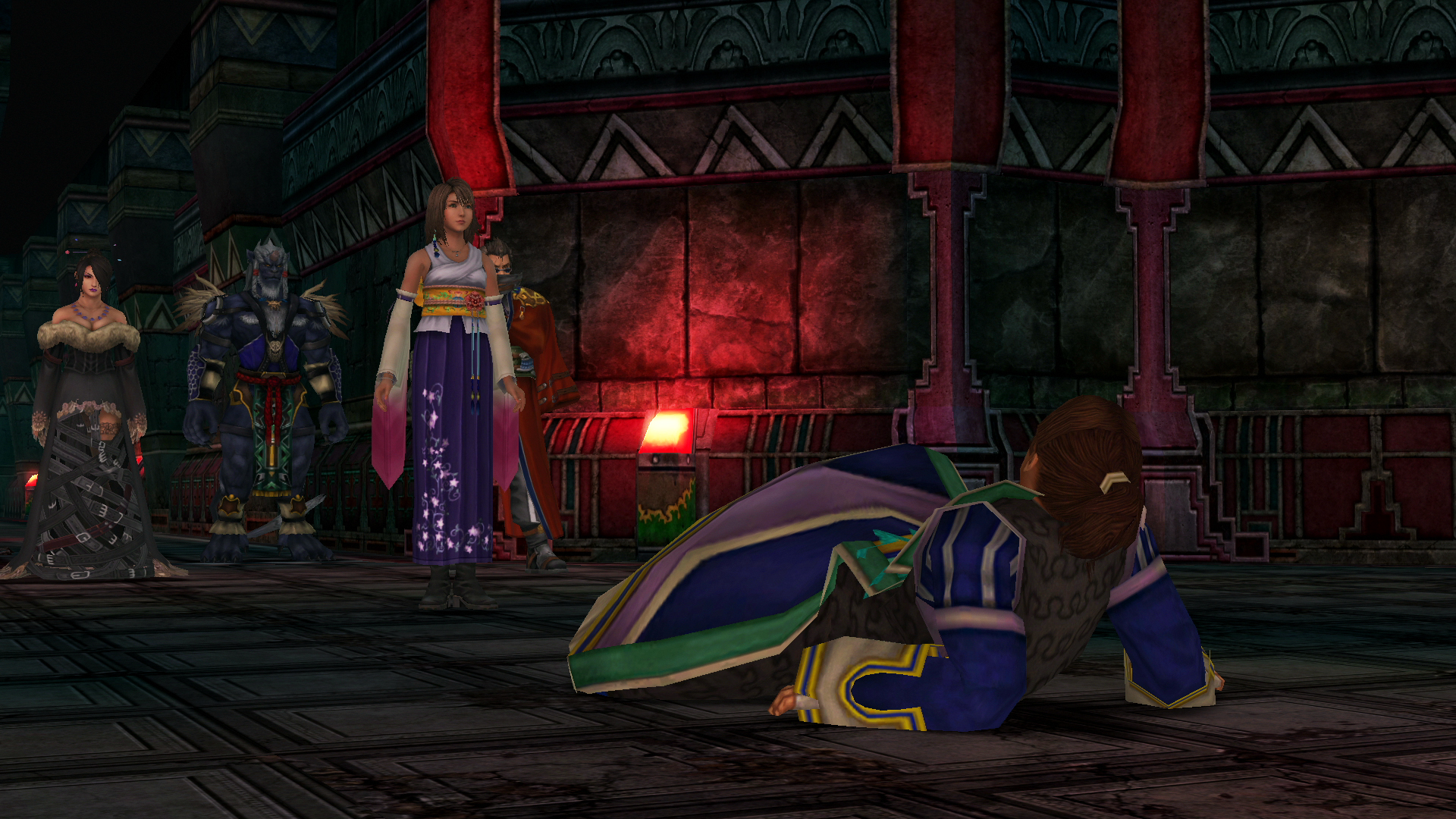 Incorrect character animations in a cutscene from the original Final Fantasy X with widescreen hacked.