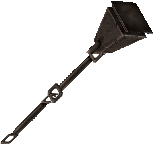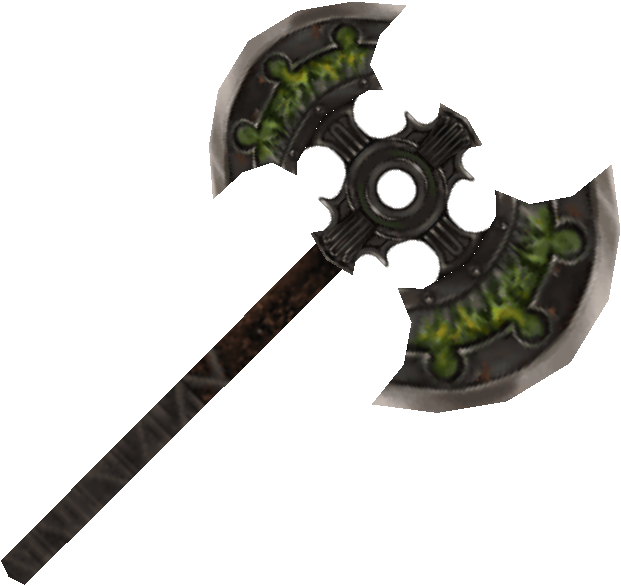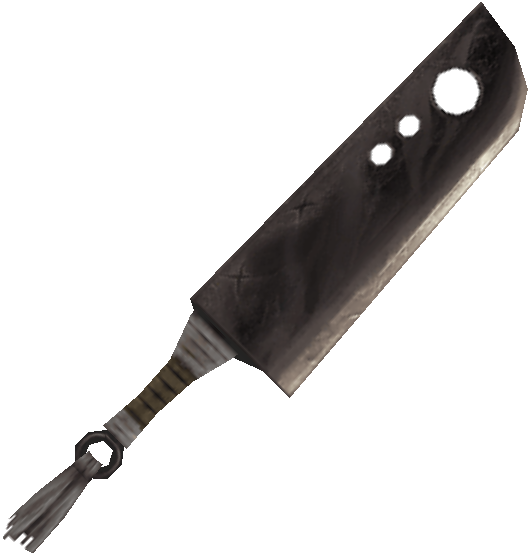 These NPCs' equipment pieces are items that will vanish if the player removes them. The majority of the weapons below have one weapon used for attacking while the second one acts like a shield. If the player hacks the shield weapon into their attacking weapon slot, the game will freeze up when trying to attack with it.