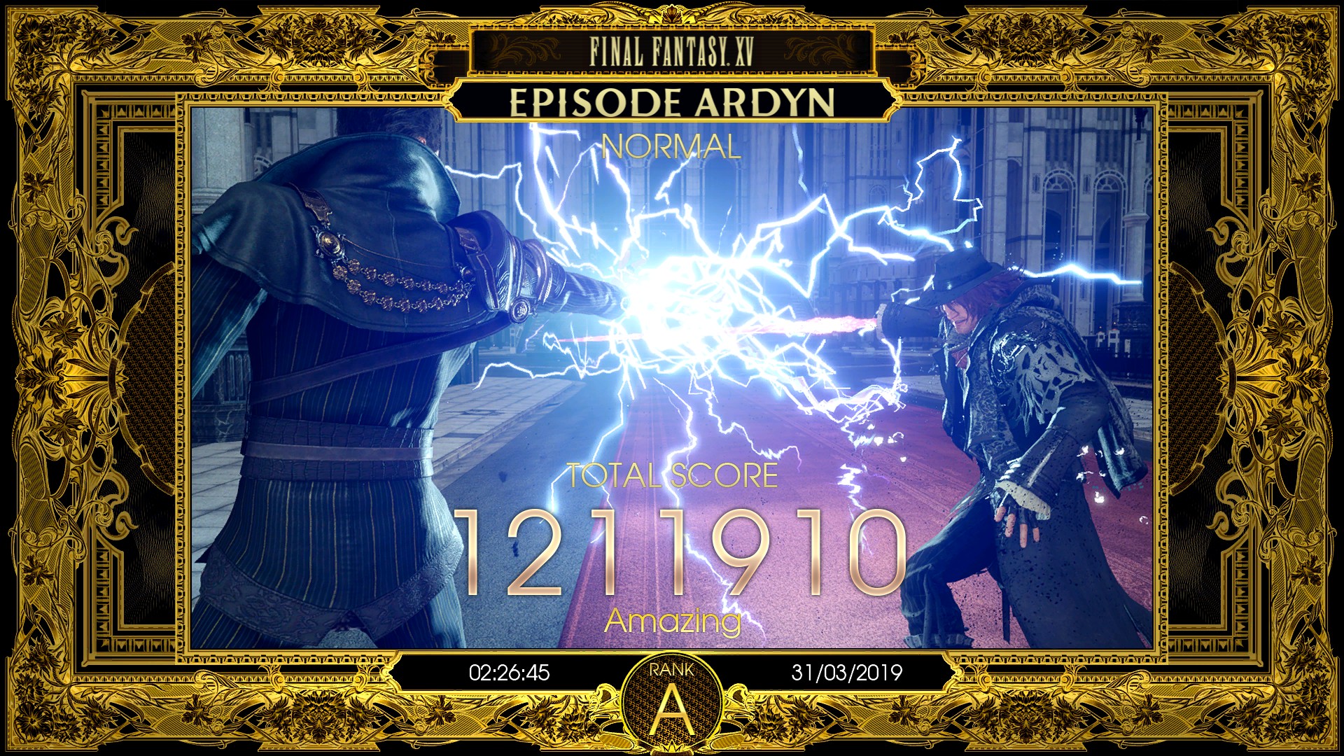 The credits sequence shows clips of Ardyn's interactions with the party as well as his murder of Lunafreya (heavily implied to be part of Ardyn's memories) while walking towards the ruins of Insomnia during the long night. He ascends the throne while looking glum. After the Final Fantasy XV: Episode Ardyn logo pops up, it cuts to the events just prior to his and Noctis's duel, which continues the story of the main game with Chapter 14.