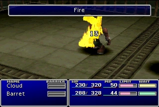 Fire is an attack magic spell in Final Fantasy VII. It is granted by the Fire Materia at level one, and is the basic Fire-elemental spell below Fire2 and Fire3.