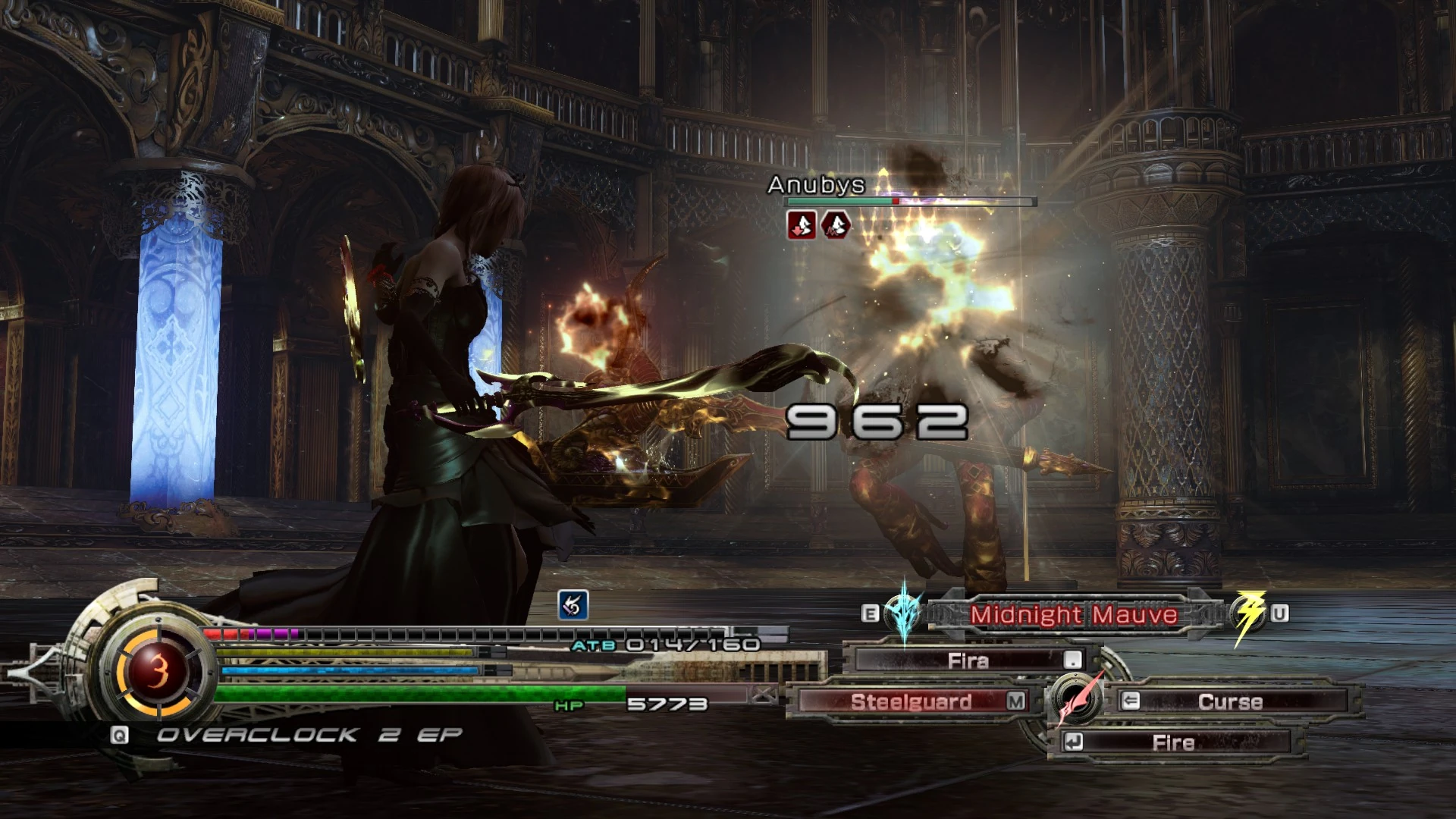 When used, Lightning launches a fireball at the target, dealing magic fire-elemental damage. By default, Fire Lv. 1 has an ATB cost of 15, an attack power of 0.40, a Stagger Power of C, and a Stagger Time of E. Fire Lv. 5 at max has an ATB cost of 10, an attack power of 2.55, a Stagger Power of C, and a Stagger Time of E.
