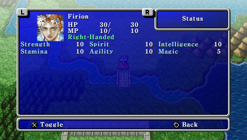 As with all characters in Final Fantasy II, Firion's abilities and stats can be freely customized to use him as the player wishes.