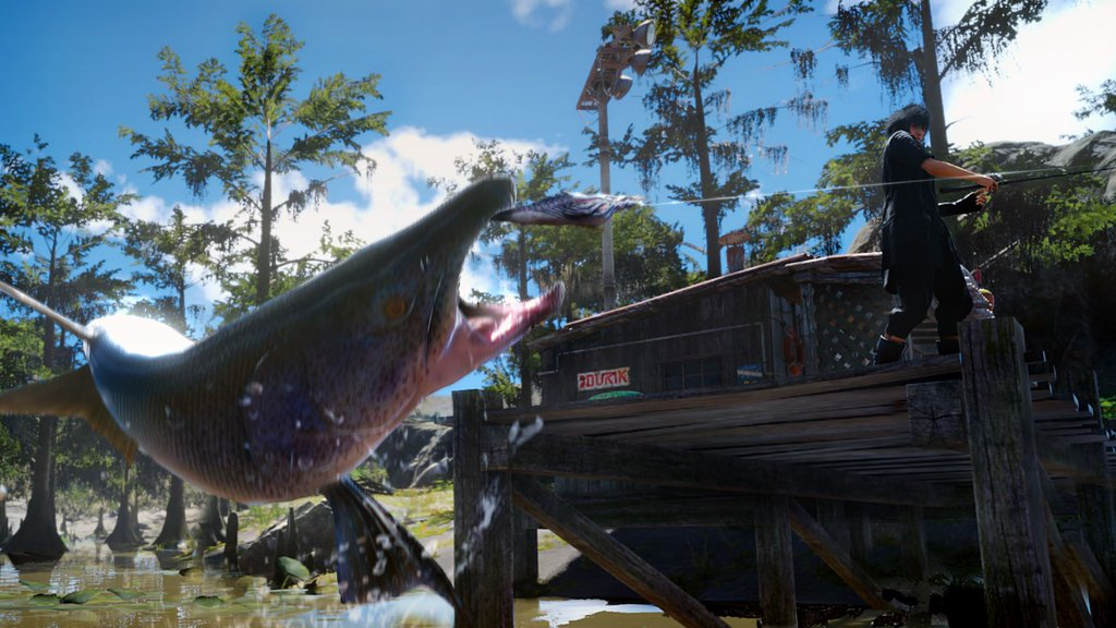 Fishing is Noctis's leisure skill and the player can level up his fishing skill via fishing; the fishing experience is added when resting at camp or at lodgings, the same as for EXP.