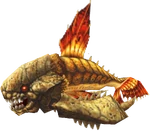 The Fastitocalon appears as a pair of enemies encountered in beaches and deserts throughout the world. While different species, they are both fish that swim through sand, with only their identical dorsal fins being visible at first. They can only be distinguished by the cry at the beginning of battle, as the larger creature has a deeper cry. They resist all damage while swimming, and may burst from the sand after taking damage.