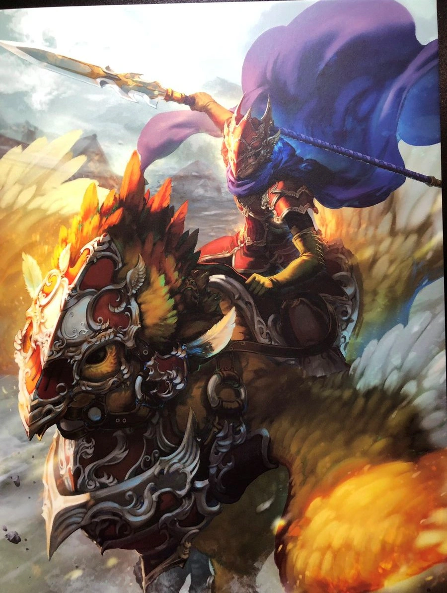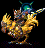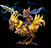 An eccentric knight who fights atop a chocobo. Fohlen wears flexible and adjustable armor that allows him to wander around the world working as a mercenary for hire. Chocobos are usually used as a means of transportation and as a tool for cultivating the land, whilst most military forces prefer airships to carry out their duties. For this reason, chocobo knights are often frowned upon, making their numbers scarce.