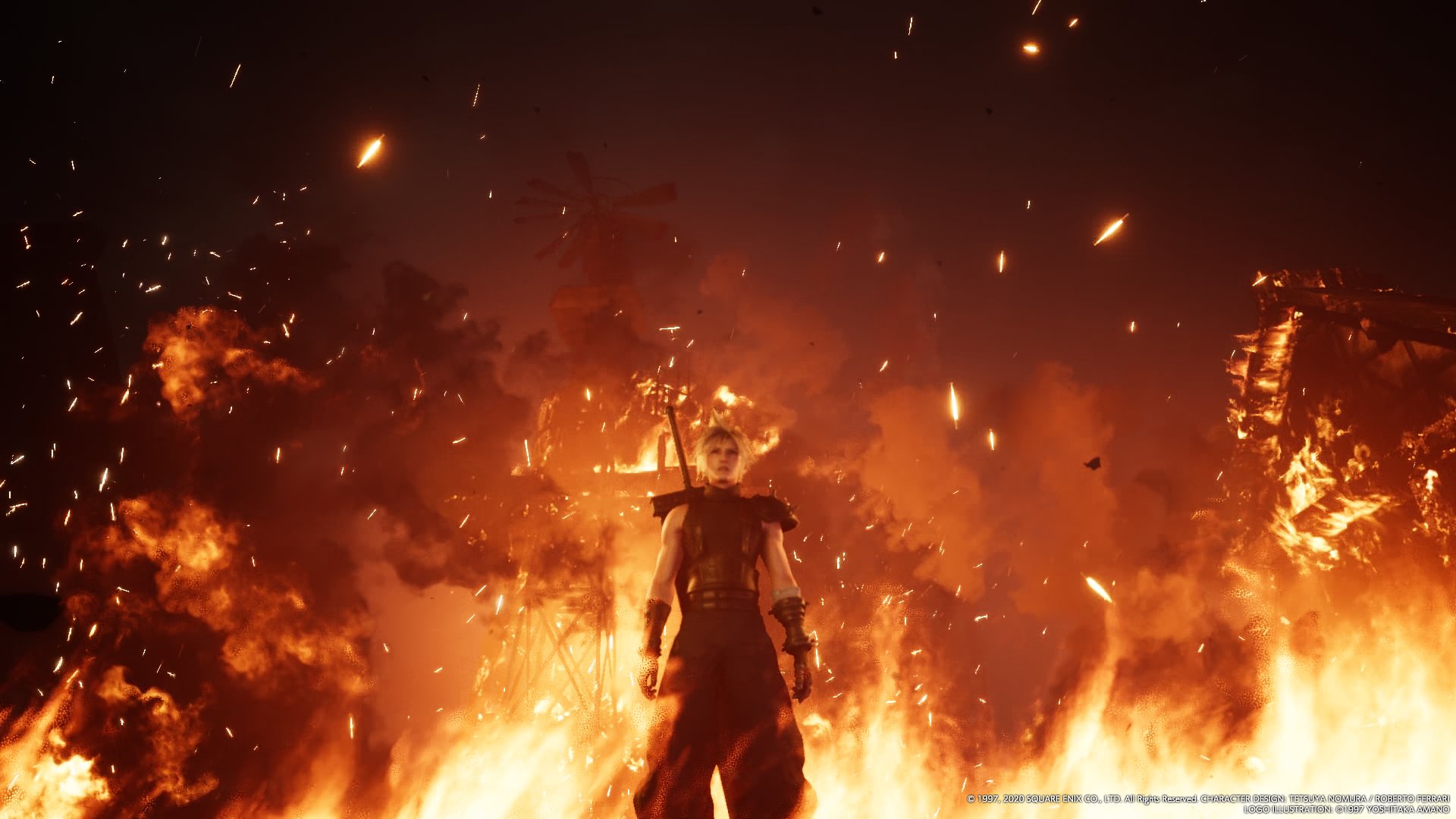 As the quest begins, follow Sephiroth through the fire. Cloud's movement is drastically slowed, and the camera's vision is blurred. Cloud will eventually catch up to Sephiroth, at which point he will move forward. After following him into an alleyway, a cutscene commences when Sephiroth talks to Cloud.