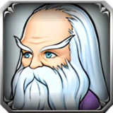 Fusoya is an old man wearing blue and purple robes of varying shades. He has long silver hair and a long beard with bushy eyebrows, and has light blue eyes.