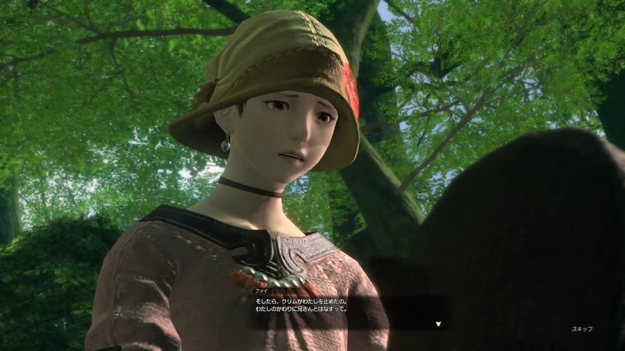 Fye is the younger sister of Dunstan, a Wood Wailers who suffered a greenwrath for fighting the imperials. Fye became friends with Khrimm, who had also lost his parents to the greenwrath for the same reasons. Fye believed that her brother became a wildling due to Dunstan's mask breaking and she leaves the mask in the forest for the moogles to repair in a hope of purifying him. Afterwards, a moogle asks the adventurer to take a message to Fye, saying that it would not be possible to repair the mask because it was not broken.[1]