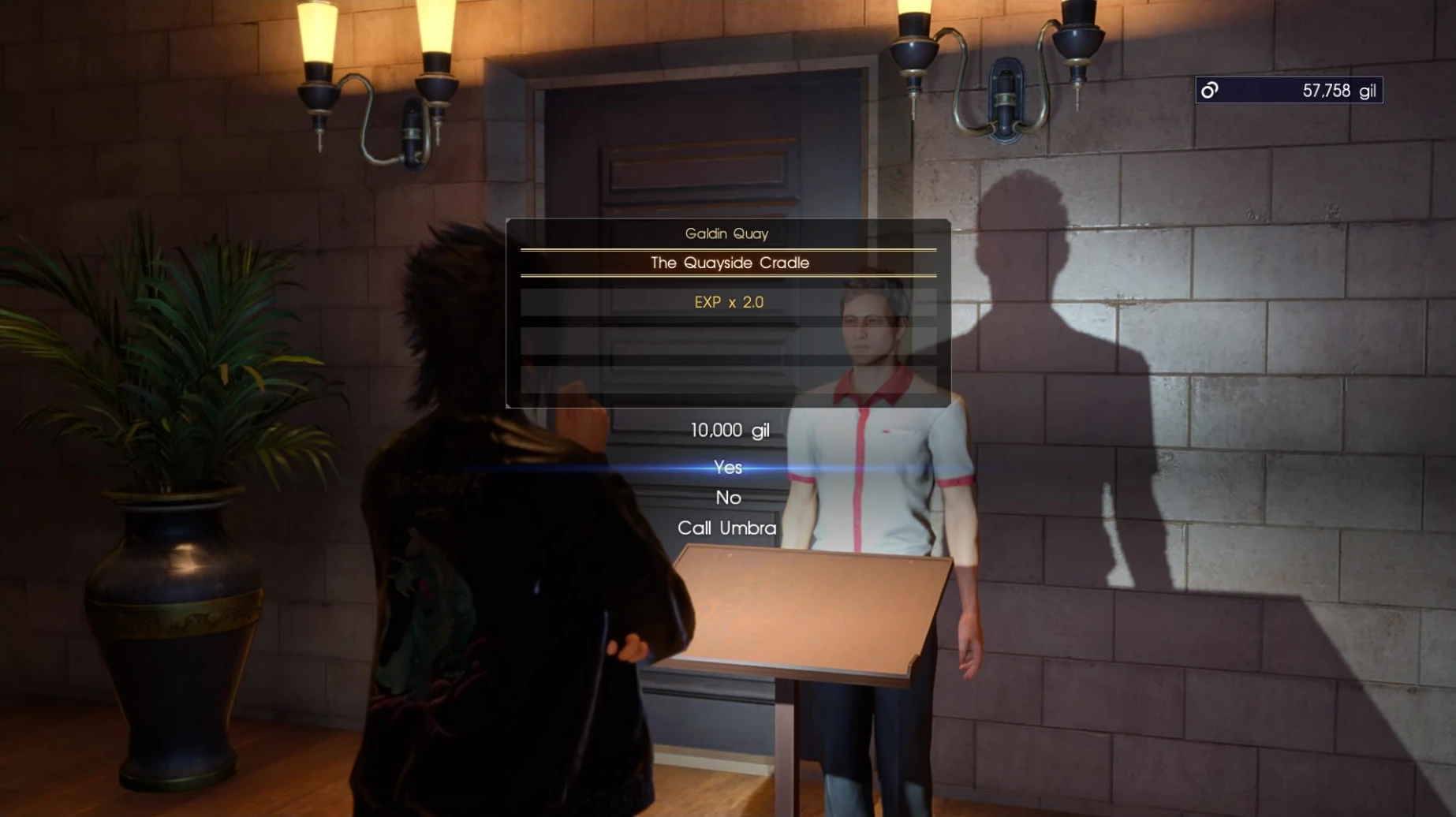 Noctis's bachelor party at Galdin Quay was in the plans, but Director Hajime Tabata wanted it cut, deeming that it would not be fitting because of the world events surrounding the party's stay there.[4]