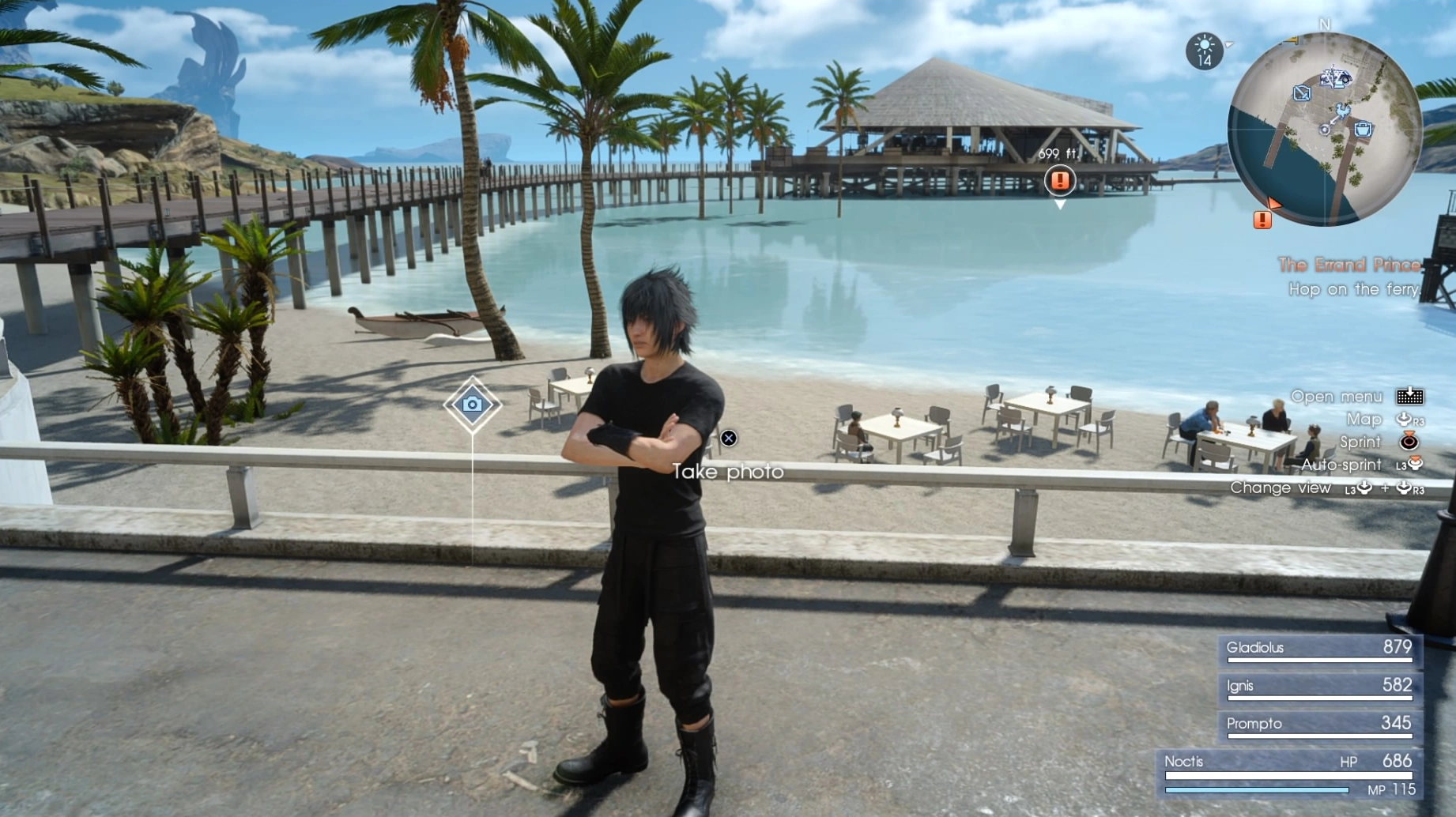 Photo Op: Quay becomes available in Chapter 3; when the player drives near Galdin Quay in the Regalia, Prompto will suggest taking a group photo on the hill overlooking the quay.