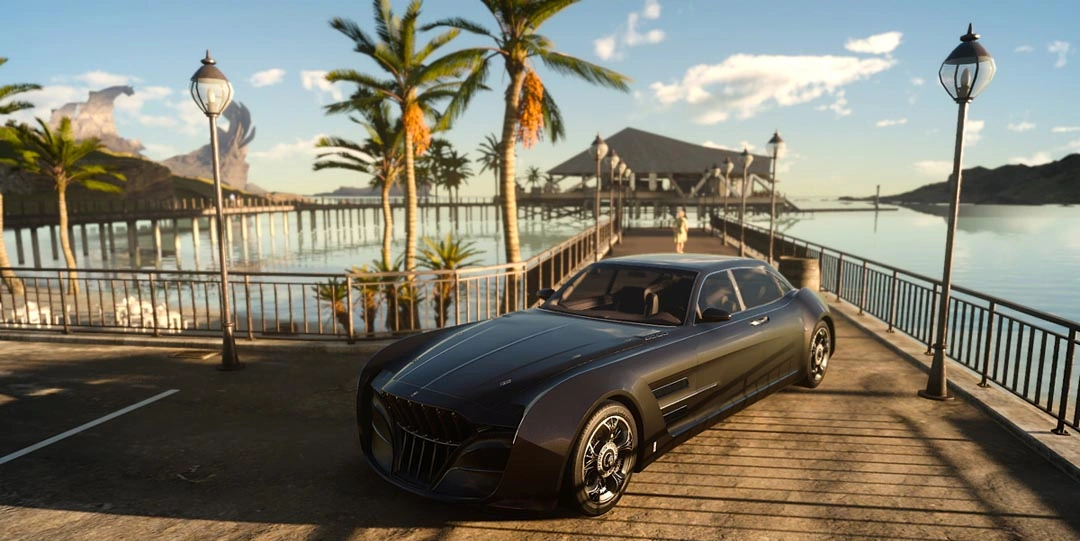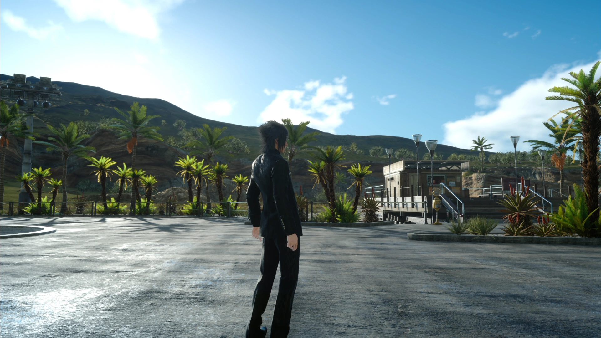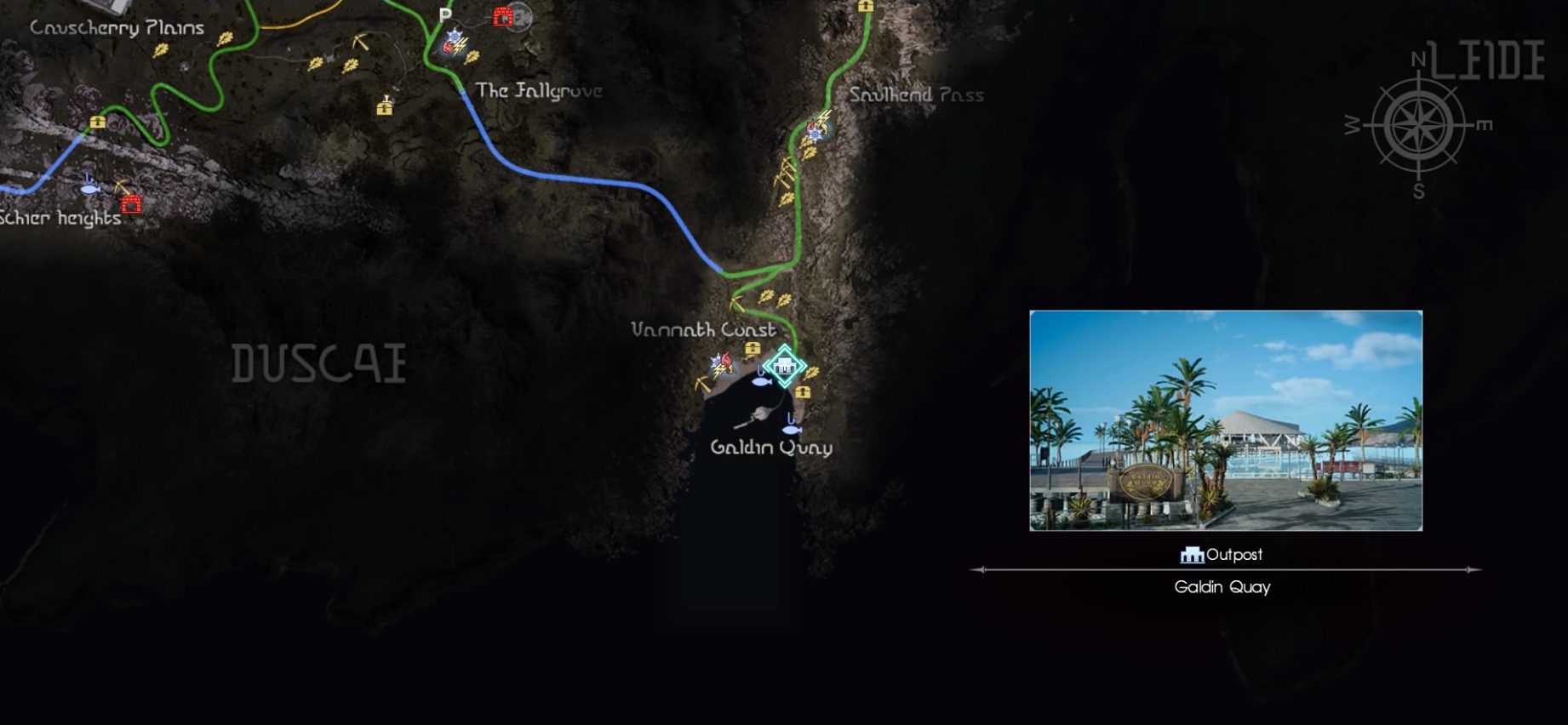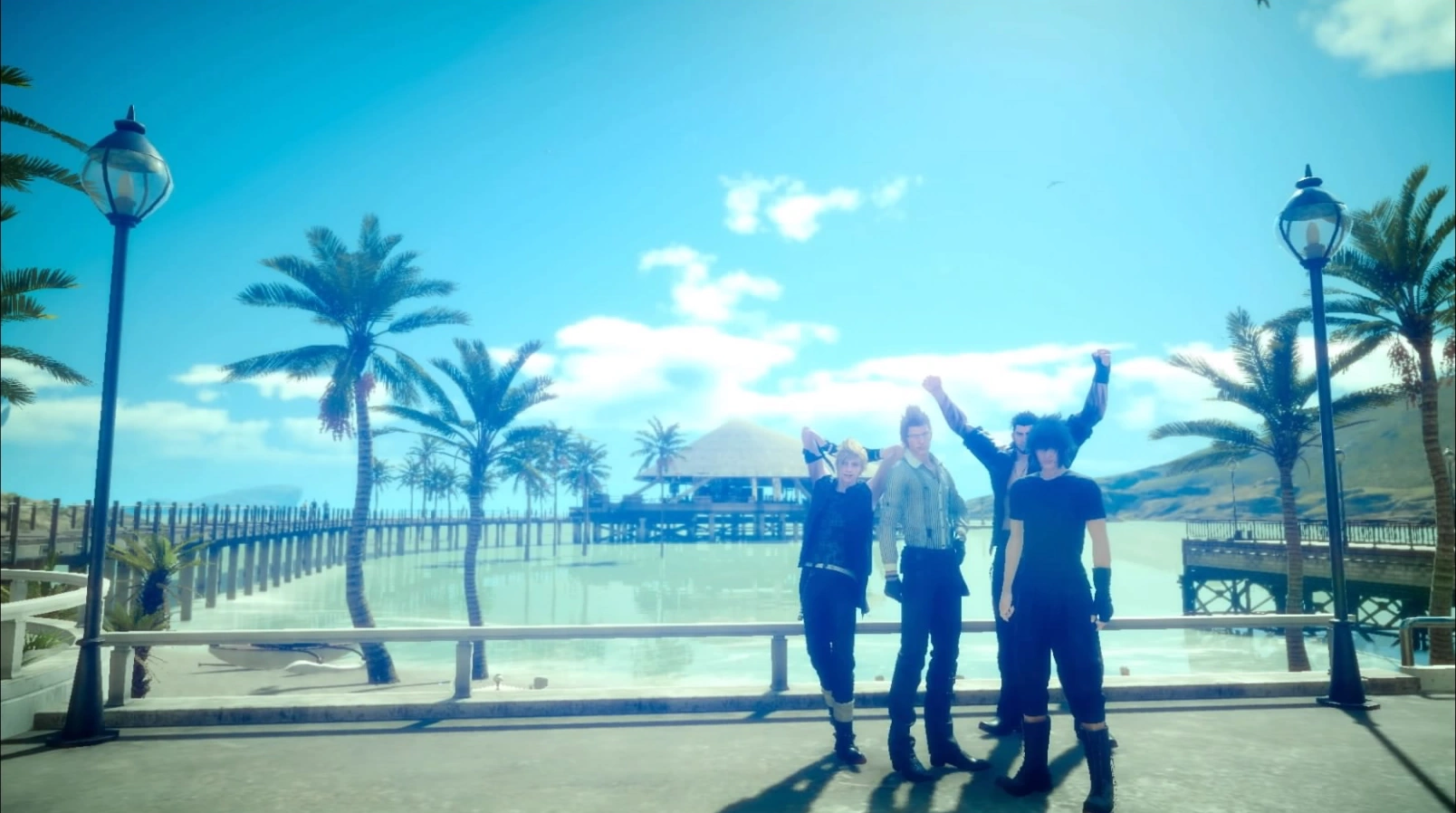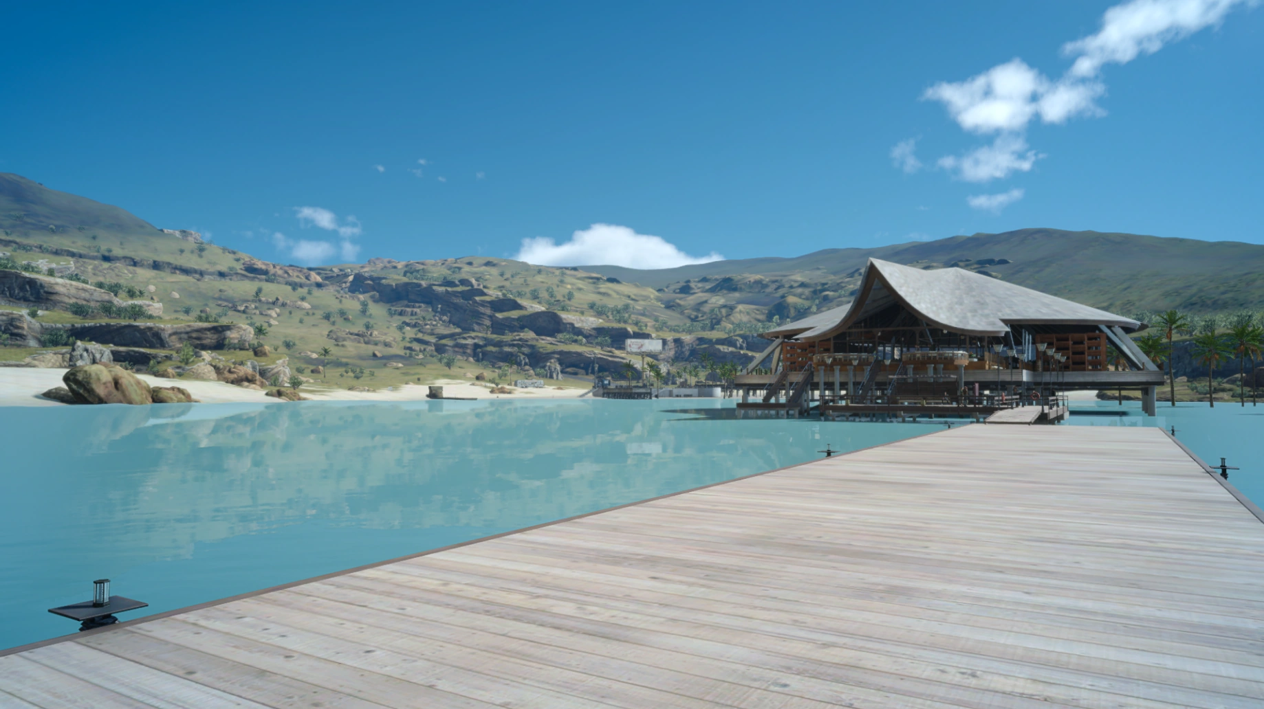 Galdin Quay is a resort area in Final Fantasy XV, close to the Leide region. It is a former fishing village and Niflheim trading port that has had a lot of Altissian influence due to being a direct route to Accordo. Palm trees, bungalows, and the Cygillan Ocean surround the area.