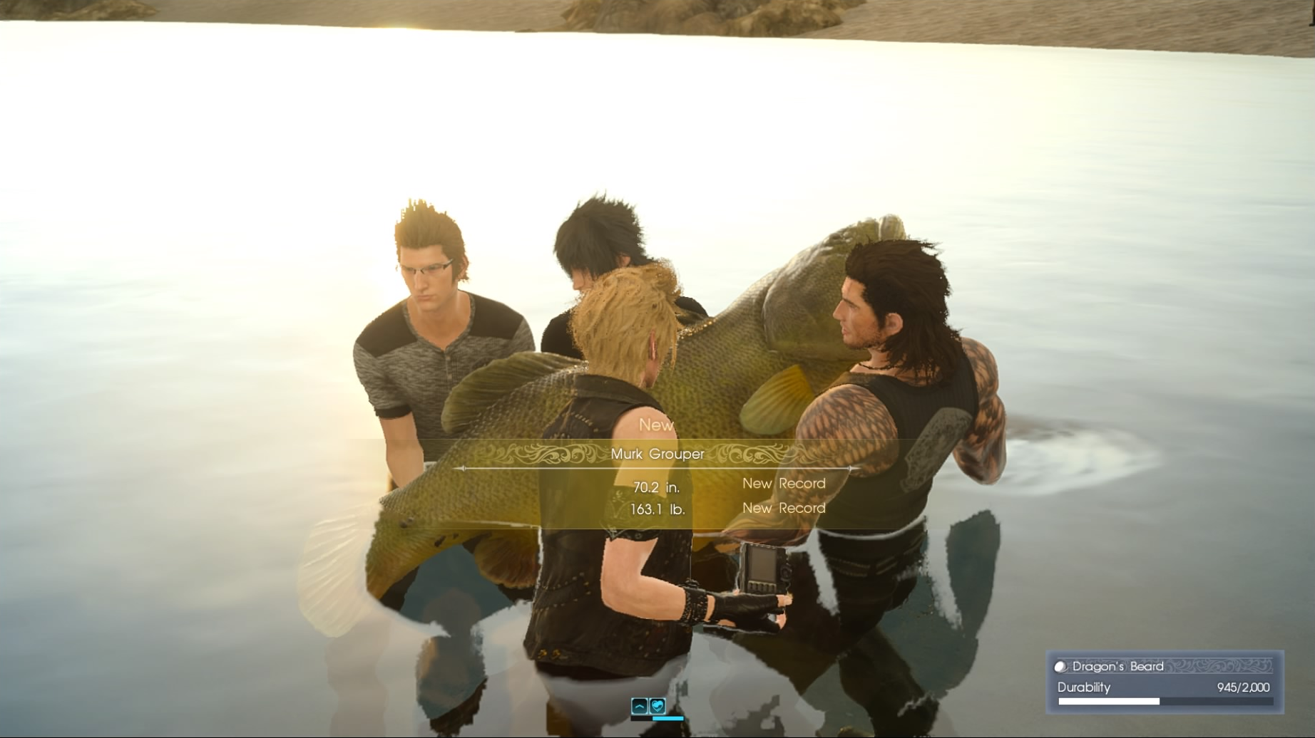 Navyth Arlund's last fishing quest, "Angler's Nightmare", has Noctis catch the "Devil of the Cygillan" (Murk Grouper). Navyth is found on the beach at Galdin Quay. It is best to be at least level 7 in fishing. The fish won't be visible on the minimap, but it can be found on the fishing spot nearest to Navyth during daytime by casting the line to the middle of the fishing area, or a little to the right. If the player spots a giant fish lurking under the surface, they have found it.