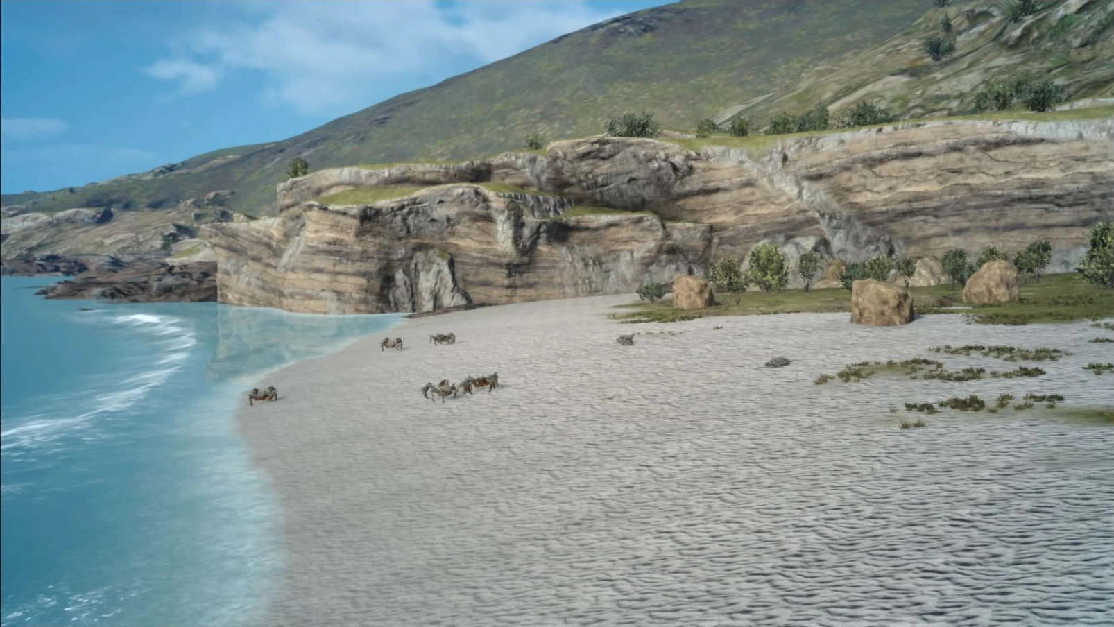 The beach nearby is part of Vannath Coast. The player can fish at the pier and stay at the caravan or haven, which is much cheaper than staying at the resort or eating at the restaurant here. Staying at the campsite triggers a tour with Gladiolus Amicitia. Stoneshears spawn at the end of the beach, and there is also a mineral deposit here.
