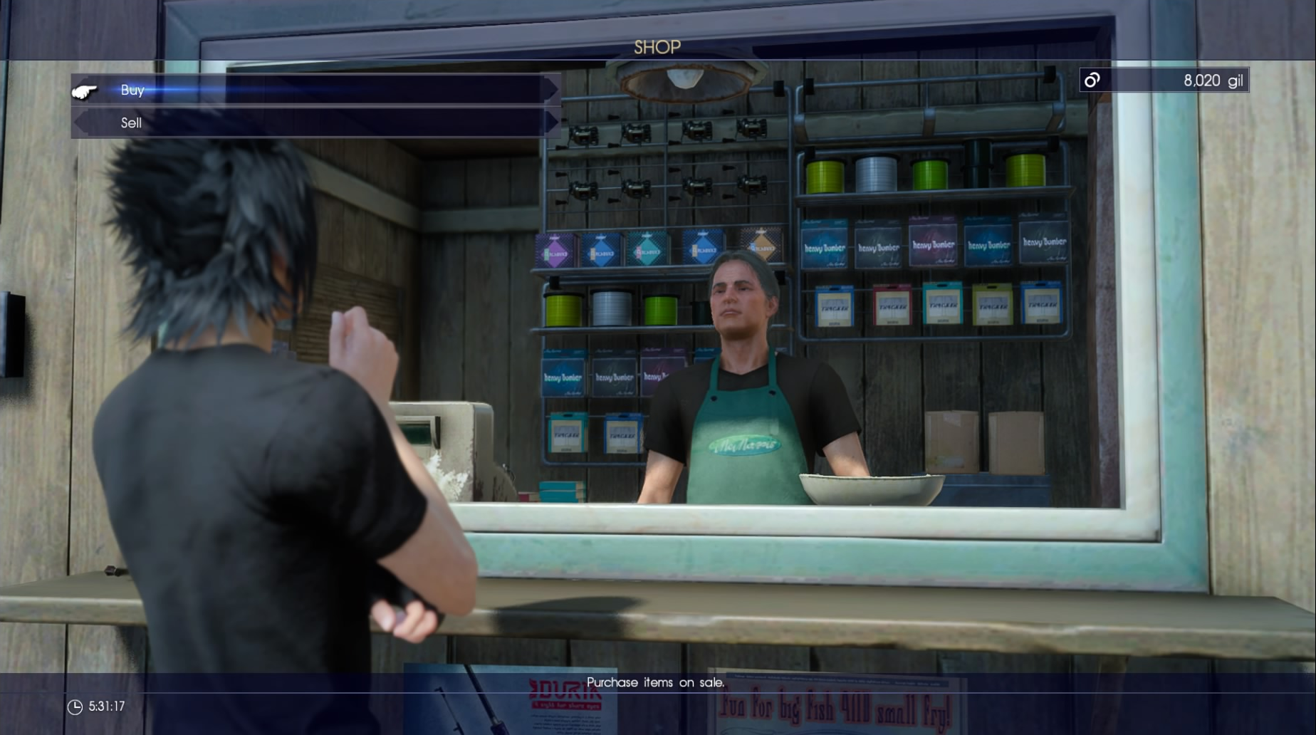 The party can find a hungry cat on the path to the main building. Interacting with it has Noctis promise to feed it with fish he has caught himself. The player can fish at the local fishing spots if they don't have any fish yet. The cat rejects the fish however, but talking to the chef at the restaurant has her cook the fish for the cat.
