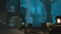 The Garamsythe Waterway appears as a portion of the Royal City of Rabanastre raid, as part of the Return to Ivalice series. Stretching far below the streets of Rabanastre, this channel was constructed to carry in water from its source in the Skatay Range to the north. The lattice-like architecture of the waterway is confusing to navigate, and those who lose their sense of direction find it all but impossible to find their way out again. Within its depths are the ruins of Lesalia, ancient capital of the legendary kingdom of Ivalice.