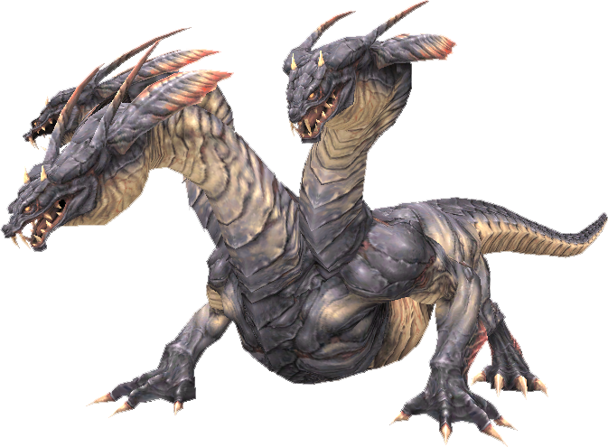 The Hydra is a notorious monster that normally appears in the Wajaom Woodlands. It can also appear in Nyzul Isle. Hydras are unique in that dealing a critical hit may sever one of its three heads, denying it access to certain abilities and removing innate buffs they carry. They also enrage upon dropping below 25% HP.