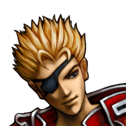 Gippal is an Al Bhed with green eyes with spiral pupils and an eye-patch over his right eye. He has short spiky blond hair. He wears armor over a blue jumpsuit and purple overalls and indigo boots. His wields a large machina mortar with a rounded saw blade as his weapon.