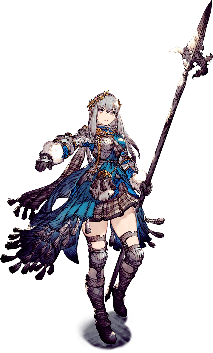 Glaciela Wezette is a UR-rarity unit of the Water element whose main job is Valkyrie, while her sub jobs are Monk and Ninja. She can equip the following items: Spear, Helm, Armor, Accessory. Her unit cost is 80.