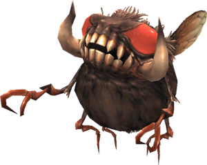 The countless dead left in the great war's wake served as a nearly limitless breeding ground for opportunistic pests such as the gnat. Without discrimination, these flesh-eating pests buried their eggs within corpses, which served as a food source for newly-hatched larvae. It is believed that feasting on the flesh of dead mages—on the Mindartian continent in particular—somehow triggered an evolutionary abnormality resulting in a formidable array of gnashing teeth. Once the unfailing acuity of the gnat's sense of smell became common knowledge, the distinctive buzzing of the gnat's approaching wings was considered a sure harbinger of death among soldiers.