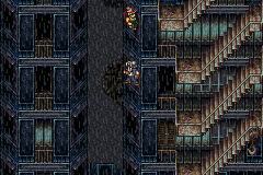 The Cafe sign on the battle background of Zozo has five pixels that are set to the palette color 00. Since this color is used for the transparent color, when triggering an animation that requires a flash, those pixels will not flash. This is due to the changes made to the North American version due to censorship of the "Pub" altered to Cafe. This bug is not present in the Japanese version.
