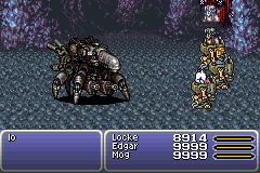 At the third part of Cyan's Soul, the player gets to pilot a magitek armor in an unknown cave. Whoever is the leader of the party will get on a magitek armor on the map screen. If the player switches out leaders, the previous leader will still technically have the magitek armor vehicle. This becomes evident at the ending cutscene of Cyan's Soul after Wrexsoul is defeated; all of the party members who were not in the lead at the end of the magitek armor portion, but took the lead sometime during that part, will show up in magitek armor at this time. Simply switching someone into the lead and back without leaving the subscreen, however, will not trigger the bug. There is a bugfix patch that players can use to fix it on the SNES version.