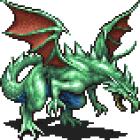 The Green Dragon is a boss in Final Fantasy II. He is a Poison-type creature guarding a Wind Flute in a treasure chest in the Emperor's Cyclone Fortress. After defeating this monster-in-a-box, he may be seen again as a random encounter in the lower levels of the Jade Passage.