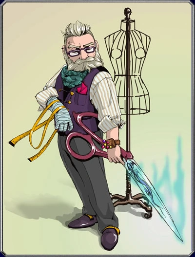 4★ - No. 0713:The tailor of a certain royal family. Grinfield was a knight in his youth until he lost his family to the ravages of war and retired from his post. This led him to become a tailor, but he would soon face more grief as war eventually destroyed his homeland as well. He then left on a journey himself, though no one seems to know for what purpose.