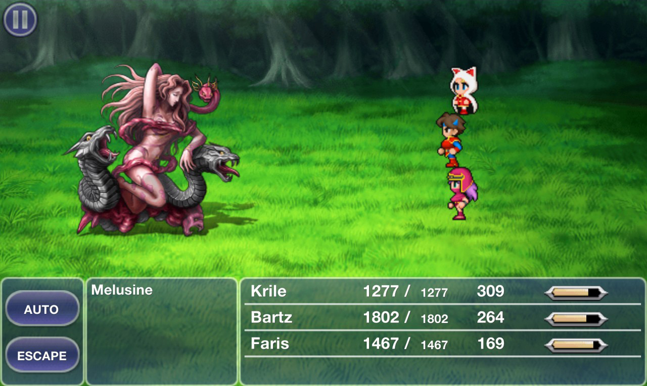 In the merged world, the small grove around the Guardian Tree becomes its own location, along the valley between the Library of the Ancients and the Pyramid of Moore. After completing the Pyramid of Moore dungeon, Melusine is fought as a boss.
