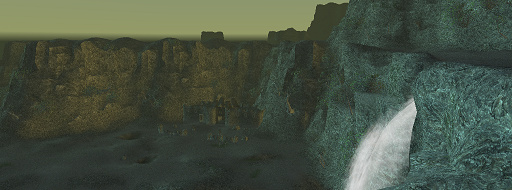 North Gustaberg is a large valley found northwest of Bastok and south of Grauberg. A mountainous cliff divides Gustaberg in half and a ramp carved into its face is the only means of passing from one side to the other. Water cascading over this boundary, though undrinkable due to mineral contamination, forms a dramatic natural wonder, the Drachenfall, which feeds Zeikt Creek as it flows west into Dangruf Wadi.