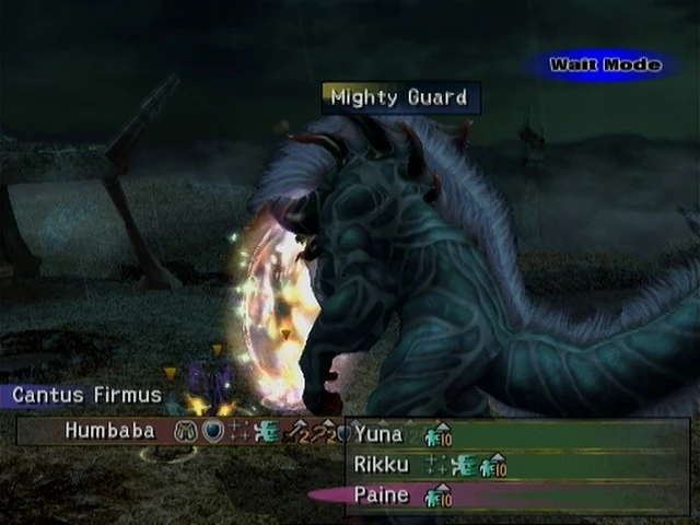 Humbaba has enormous Strength and as soon as the battle starts, it will buff with Mighty Guard. Mighty Guard is used again when Humbaba loses 66% of its HP, and it also uses Thundaga. Humbaba's Uppercut deals around 1,500 damage and carries a huge delay. Once Humbaba loses 66% of its maximum HP, it gains access to the Tyrant Tail attack, which hits the whole party for about 800 damage and has a small delay effect. Swipe inflicts moderate damage of about 400 to one target. Once Humbaba is defeated, it will cast Meteor as a last resort to kill the party. Humbaba's attacks inflict delay.