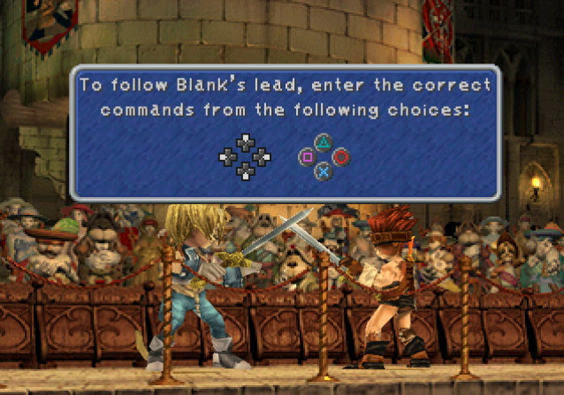 During the play at the beginning of the game, Zidane and Blank have a staged sword fight that plays like a minigame with the player having to follow with button combos.
