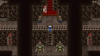The interior of the palace is sparsely furnished with red carpeting and Imperial banners, but maintains the industrialized aesthetic of the exterior. The palace opens on a hallway up several flights of stairs to Emperor Gestahl's throne room, and beyond this lays a banquet hall. Branching off from this hallway, the east wing of the palace contains prison cells and a private bedroom and study, and the west wing contains a small treasure room and a soldier's barracks.
