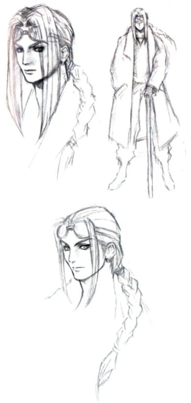 Tetsuya Nomura wanted to strike a balance with Irvine to not overshadow Squall and not be too attractive and so gave Irvine a handsome appearance, but with a casual personality. Keeping with this idea, Nomura gave him goggles, but this idea was abandoned in favor of a cowboy-like appearance to set him apart from other goggle-wearing characters in the Final Fantasy series.[4] In the early design, his hair was tied in a braid and his bangs were longer and straight.