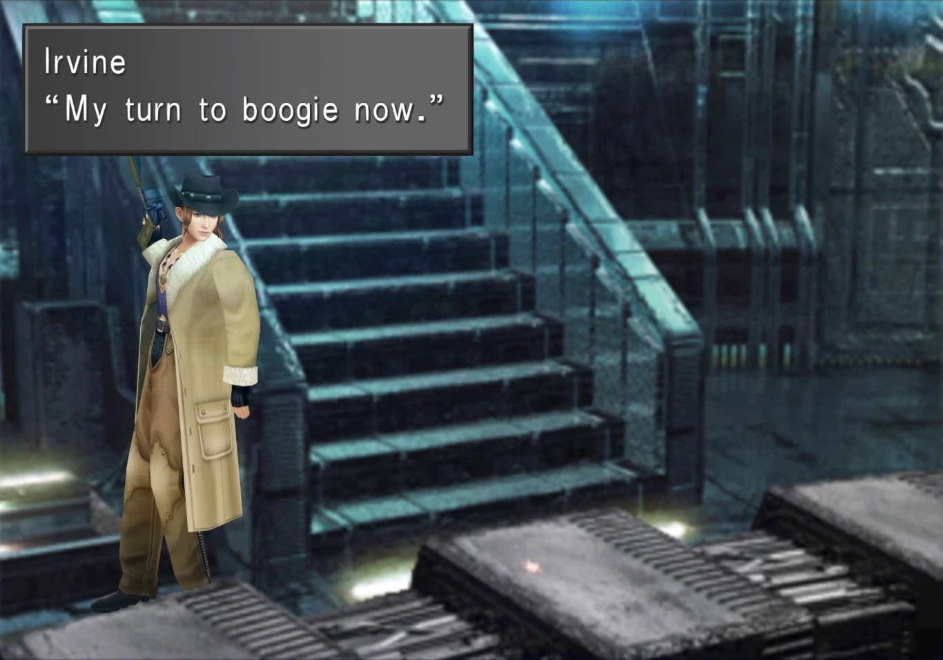 Even Quistis is not spared from Irvine's advances.