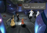 If Irvine is not included in Squall's party when the team is leaving Galbadia Garden, he will not be impressed with the party splitting. He will approve of being included in Squall's party or if Squall lets him be with Selphie and Rinoa. When not in Squall's party, Irvine is hanging out in the second floor classroom watching Selphie when in Balamb Garden or in the cockpit when on the Ragnarok.