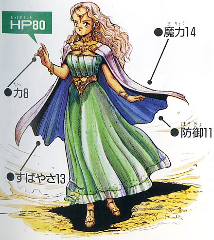 | Appearance(s) | HP | Str | Def | Agl | Mana | Equipment |