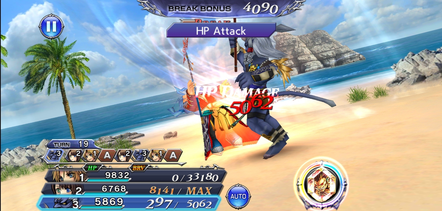 | 3-HIT AoE ranged BRV+HP attack. Moderately raises BRV damage dealt to a single target. | ||||