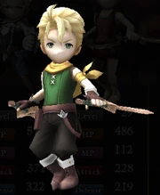 | Rossi is a young man who dreams of becoming a hero. Upon hearing news that Ray Jack was planning to found an adventurer's guild, Rossi rushed to the gates to join. He was initially turned back due to his lack of battle experience, but after continuous pleas, Ray Jack finally relented to Rossi's passion and accepted him into the guild. Rossi is timid by nature, and at times displays a lack of bravey unbecoming of a warrior. But thanks to the many challenges put forth to the Order of the Blue Wing, he is slowly but surely improving his skills in battle. | ||||