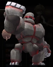 | One of several hulking piles of rock brought to life by a powerful mage. In the days of eld, a lone sorcerer toiled in the depths of a remote mountain, experimenting with his arts on inanimate stone. Try as he might, the rocks remained silent and unmoving, and the wizard abandoned his efforts. However, some time after, the forgotten experiments sprung to life. One of these was named Levi. | ||||