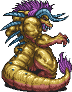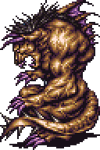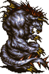 The Behemoth King, also known as the SrBehemoth, is encountered as a boss in the Cave on the Veldt, first alive and then undead. After defeating it as a boss, it can be fought as a random enemy on the Veldt, where Gau can learn it as a Rage. The Behemoth King can cast Meteor at any time and will also use other powerful abilities, such as Holy, Blizzara, and Blizzaga. In its undead version, it loses the ability to use Blizzara, Blizzaga, and Holy, but gains access to the Death spell and Sleeping Gas ability and will always back attack the party.