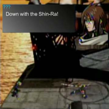 Now attempting to escape the underground base before the timers go off, Yuffie and the Player Turk are chased through the underground tunnels, encountering and seemingly defeating all three of the Avalanche commanders (Elfe, Shears and Fuhito) in their escape. After escaping, Yuffie deduces the Player Turk is working for Shinra and runs away in a fit of betrayal due to the realization that her new friend is affiliated with the enemy responsible for damaging Wutai.